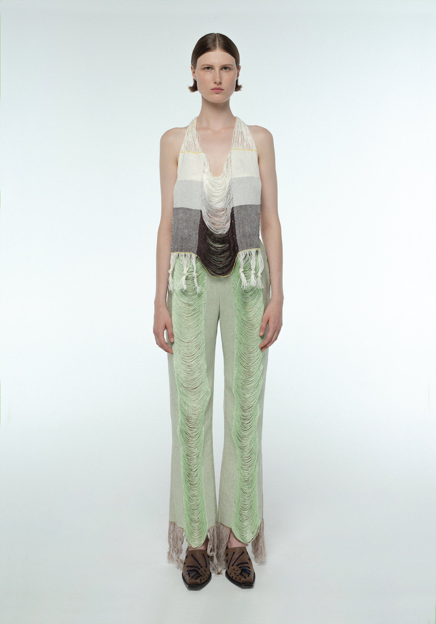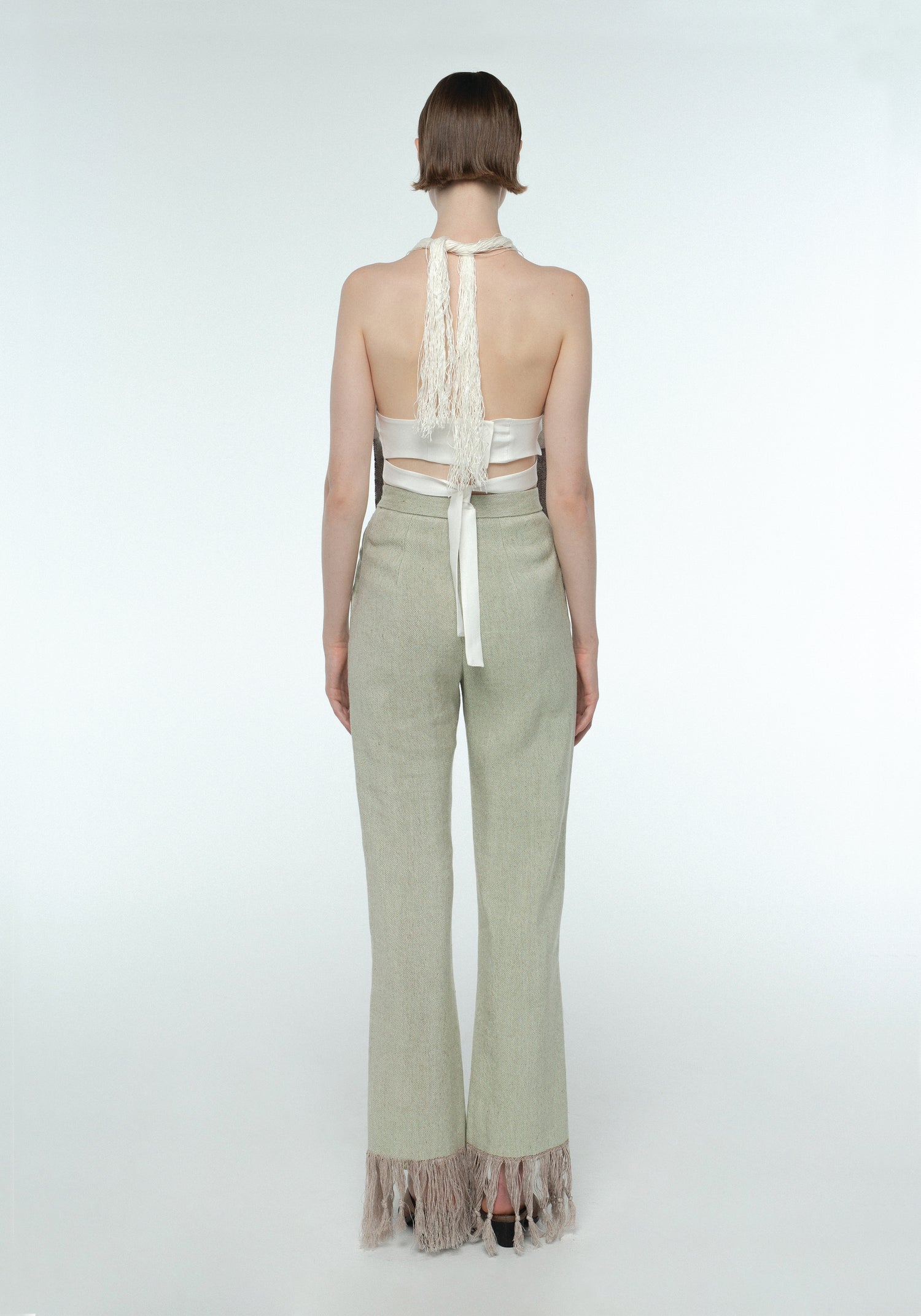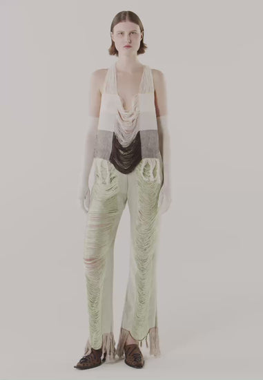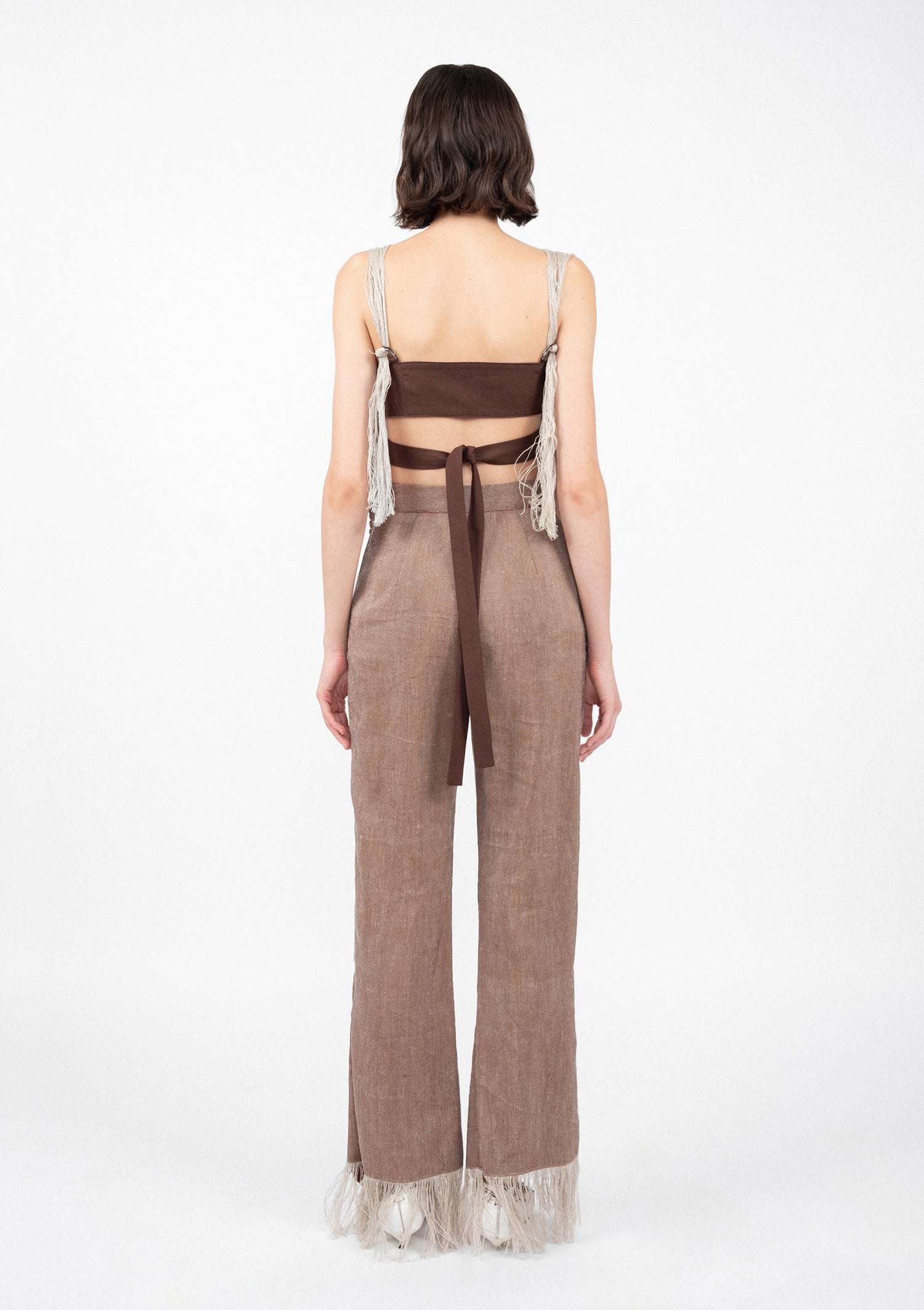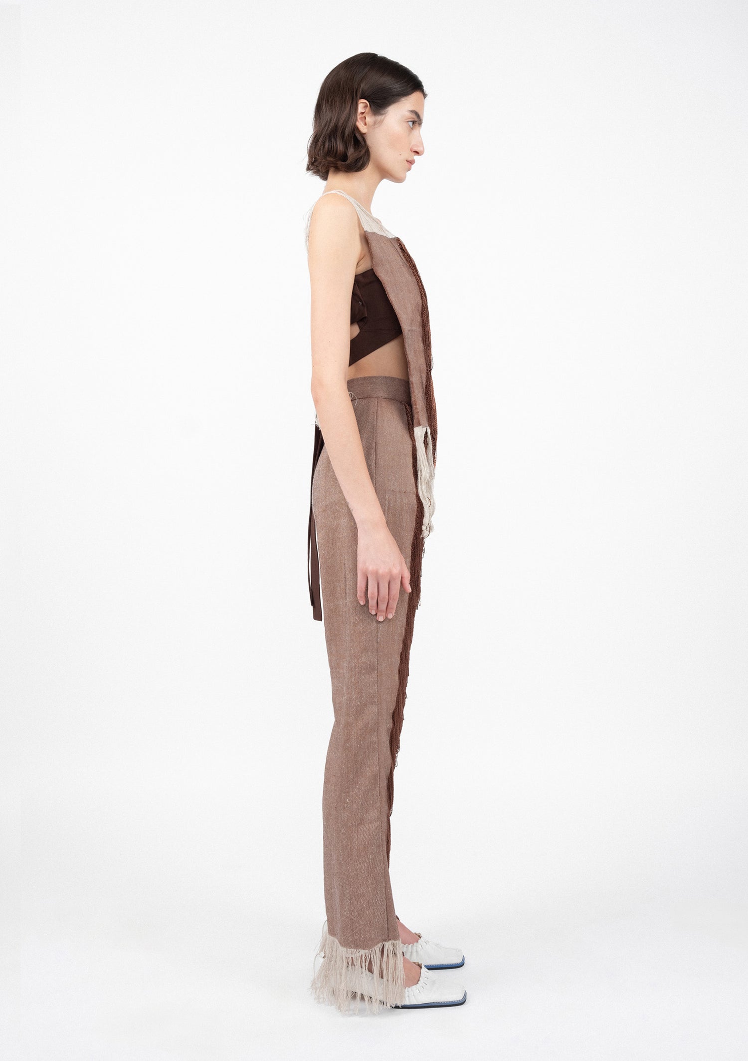 Hand woven pants in linen with loosely woven threads